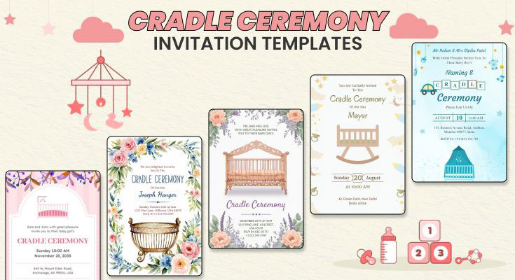 Welcome your little one with invitations that beautifully blend tradition, warmth, and creativity. From floral themes to modern pastel designs, these cradle ceremony invitation templates add charm to every celebration.