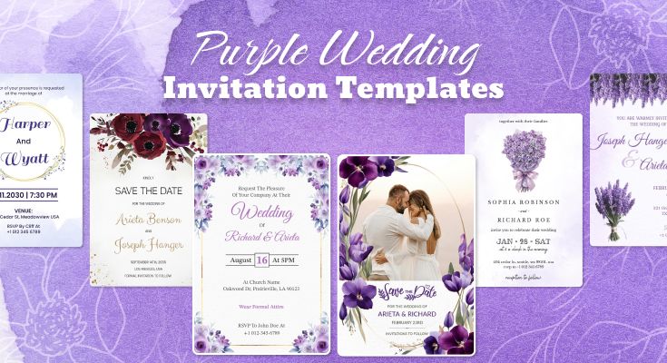 Captivate your guests with stunning purple wedding invitation templates crafted using a wedding invitation maker that blends elegance with ease.